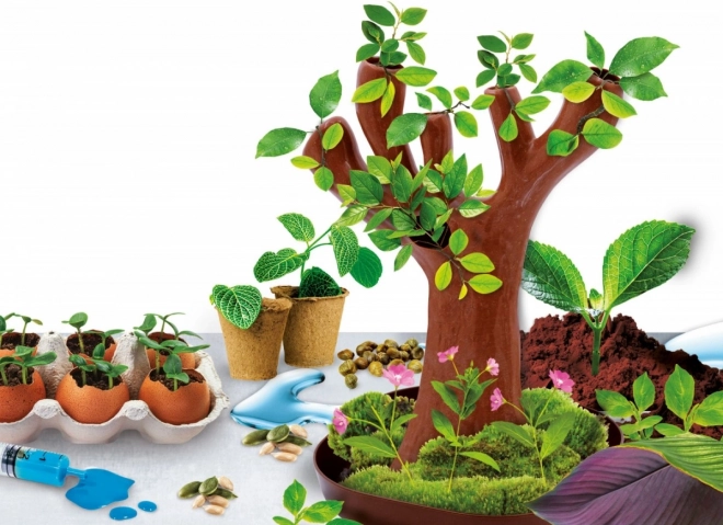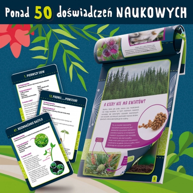 Ez a zöld oktatókészlet vonzó belépőt kínál a botanikába. A csomag tartalmaz mindent, ami egyszerű otthoni kísérletekhez szükséges, melyek bemutatják a csírázást, a növekedést és a növények sokféleségét. Részét képezi egy egyedülálló bioplasztik fácska is, amelyet elég tőzeggel és magokkal megtölteni – és figyelni, ahogy fokozatosan kizöldül.