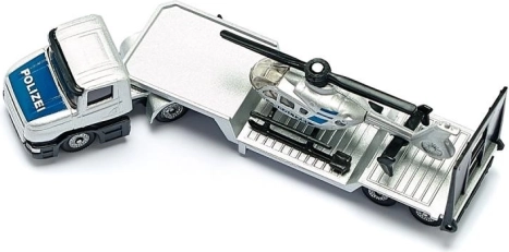 Egyedi utánfutó fém és műanyag alkatrészekből, a SIKU rendőrségi helikopter szállítására.