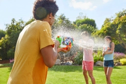 A nagy 700 ml-es kapacitás csökkenti a gyakori utántöltés szükségességét, a pumpás működés pedig folyamatos vízsugarat lő akár 9 méterig. Ideális kertbe, parkba és a medencéhez – szórakozás az egész családnak.