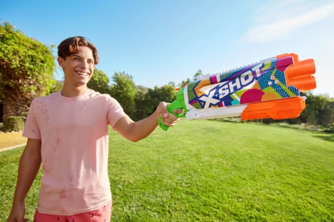 Élvezd a nyári vízicsatákat az X-SHOT Fast-Fill Pump Action vízipisztollyal, amelyet 1 másodperc alatt feltölthetsz. 700 ml-es tartállyal, akár 9 m hatótávval és pumpás mechanizmussal az erős, pontos vízsugárért.