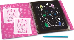 Fedezze fel a színek varázsát Barbie-val elbűvölő stílusban. A mellékelt tollal kaparja le a papír fekete rétegét, és felfedez élénk szivárványszíneket fantasztikus árnyalatokban.