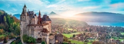 A panorámaképes puzzle a Menthon kastély romantikus látképével az Annecy-tó felett örömet szerez a gyönyörű kilátások kedvelőinek és a tapasztalt kirakózóknak egyaránt. A panoráma formátumnak köszönhetően a falon remekül mutat, és stílusos dísze lesz otthonának.