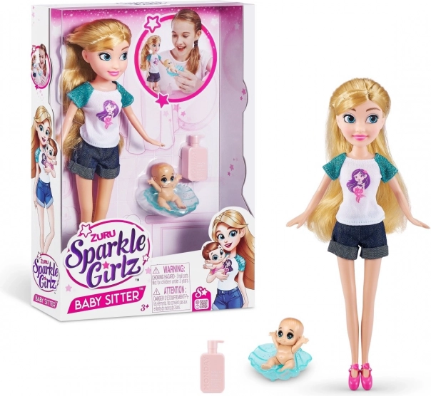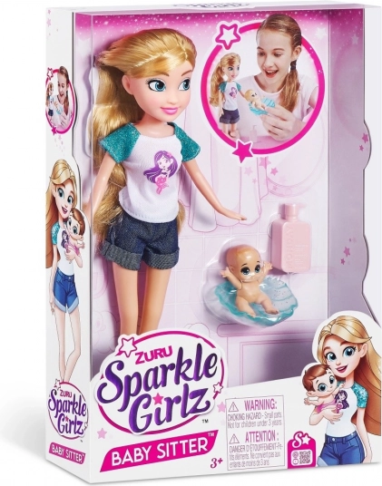 Csatlakozz a képzeletbeli játékok varázslatos világához a Zuru Sparkle Girlz bébiszitter babával. Ez a varázslatos baba készen áll az akcióra a hosszú szőke hajával és stílusos ruházatával. A csomagban található egy kisbaba és cumisüveg, amelyek lehetőséget biztosítanak különböző bébiszitter szituációk eljátszására. A cél a kreativitás és a gyermekek gondozási készségeinek fejlesztése.