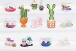 Gyűjts össze számos mini anyagot, csomagolást és kiegészítőt – az aranyos halacskáktól és pozsgásoktól a tartóállványokig és polcokig.