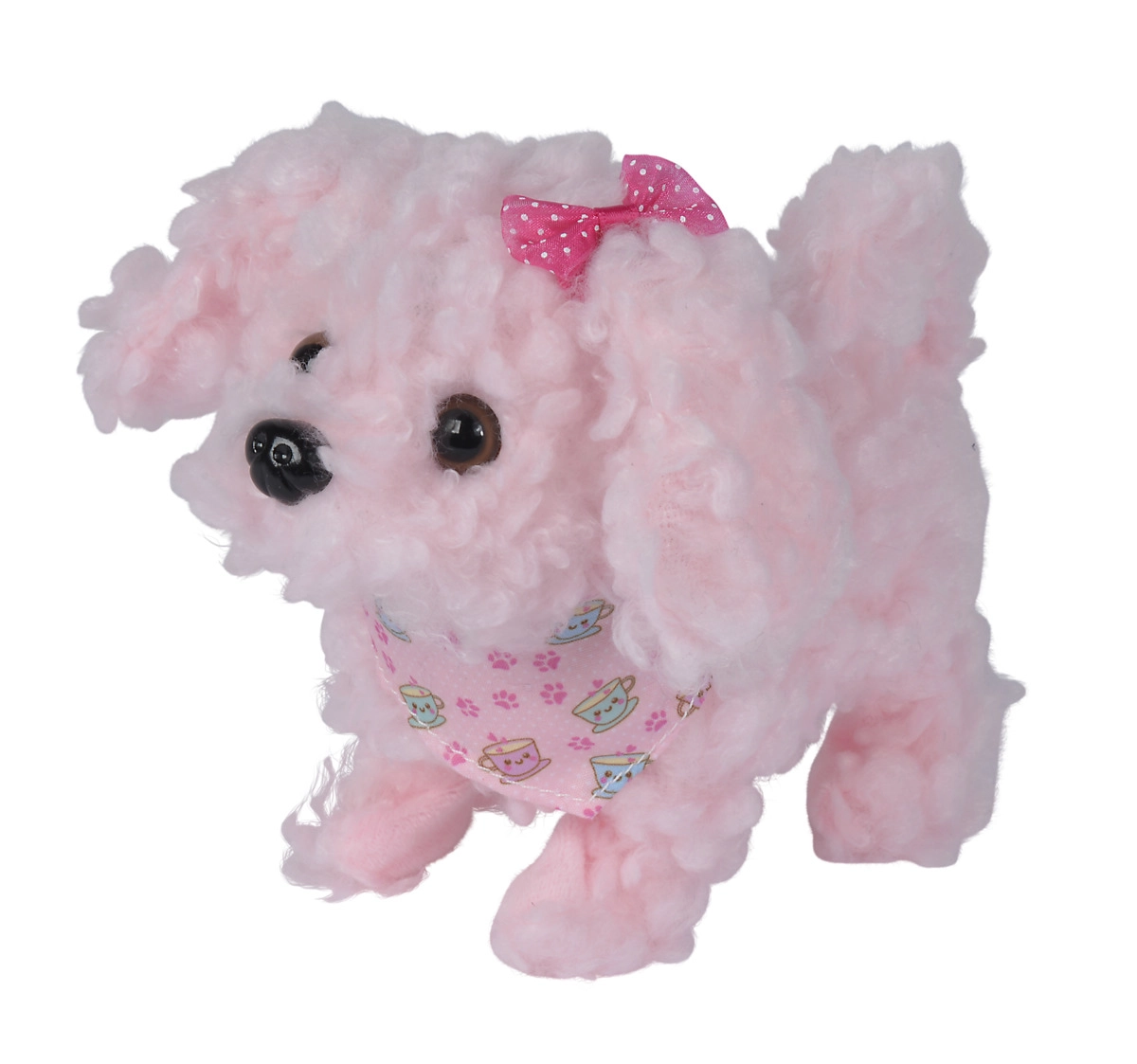 Kompakt méreteinek köszönhetően a kiskutya ideális ölelgetéshez és a mindennapi játékhoz. A stílusos rózsaszín kendő és a bájos masni megnyerő megjelenést kölcsönöz a játéknak, amely első pillantásra rabul ejt.