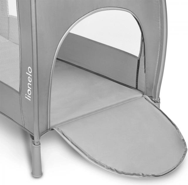 A kiságy hálós oldalaival a levegő optimális áramlásáért, melyek lehetővé teszik a szülőknek, hogy könnyen felügyeljék gyermeküket. A praktikus oldalzseb ideális a gyerek kedvenc játékainak tárolására és a cipzárral zárható oldalsó bejárat még funkcionálisabbá teszi.