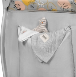 A kiságy hálós oldalaival a levegő optimális áramlásáért, melyek lehetővé teszik a szülőknek, hogy könnyen felügyeljék gyermeküket. A praktikus oldalzseb ideális a gyerek kedvenc játékainak tárolására és a cipzárral zárható oldalsó bejárat még funkcionálisabbá teszi.