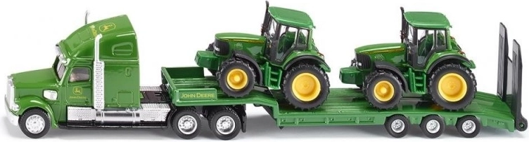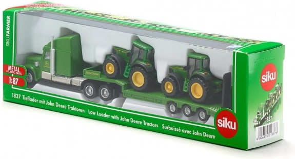 Ez az egyedülálló teherautó pótkocsival gond nélkül szállítja a 2 SIKU traktort. Minden jármű magas minőségű fém és műanyag elemekből készült 1:87 méretarányban, gumírozott gumiabroncsokkal, amelyek lehetővé teszik a sima közlekedést különböző felületeken.