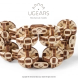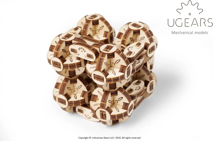 A Ugears Flexi kocka egy egyedi, steampunk által ihletett mechanikus 3D modell. Nyolc egymással összekapcsolt gömbcsukló teszi lehetővé a folyamatos hajlítást és átforgatást, így könnyedén hozhat létre különféle geometriai formákat – a téglalaptól a kompakt 3D kockáig. Minden gömb egy minimechanizmus, hat szegmensből, mozgó csuklókkal összekapcsolva.