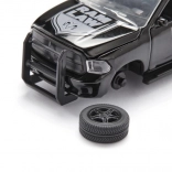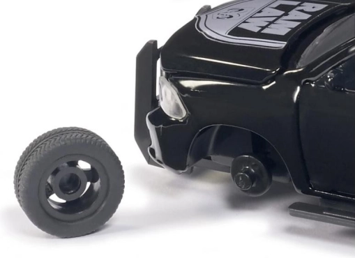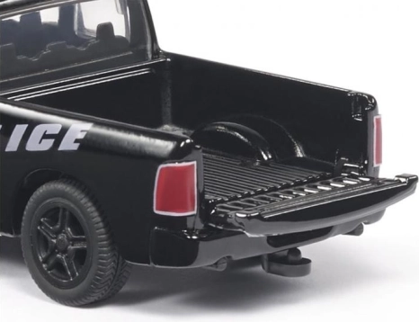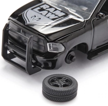 RAM! A világhírű, erős és nagy teljesítményű pick-up szimbóluma, nyolchengeres szívvel. Az 1:50 méretarányú modell hűen adja vissza ennek a pick-upnak a valódi méretét és funkcionalitását. Nyitható motorháztető, ajtók és hátsó ajtó. A legújabb SIKU-innováció a kerekekben rejlik: első alkalommal eltávolíthatók, így a gyermek javítóműhelyes játékot is játszhat. A rendőrségi változatot jellegzetes forgó figyelmeztető fények és karakteres feliratok díszítik.