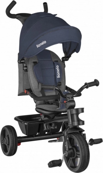 A LIONELO Haari Jeans tricikli praktikus alternatívája a sportbabakocsinak – a teljes felszereltségű módból fokozatosan önállóan hajtható kis kerékpárrá alakul a kis motoros számára. A 360°-ban forgatható ülés lehetővé teszi a szülő felé vagy menetirányba néző utazást, míg az acél váz és az átgondolt moduláris felépítés hosszú élettartamot és könnyű testreszabást biztosít.