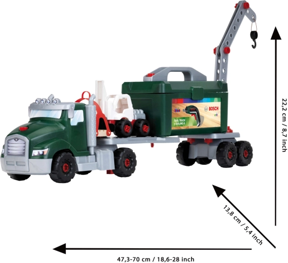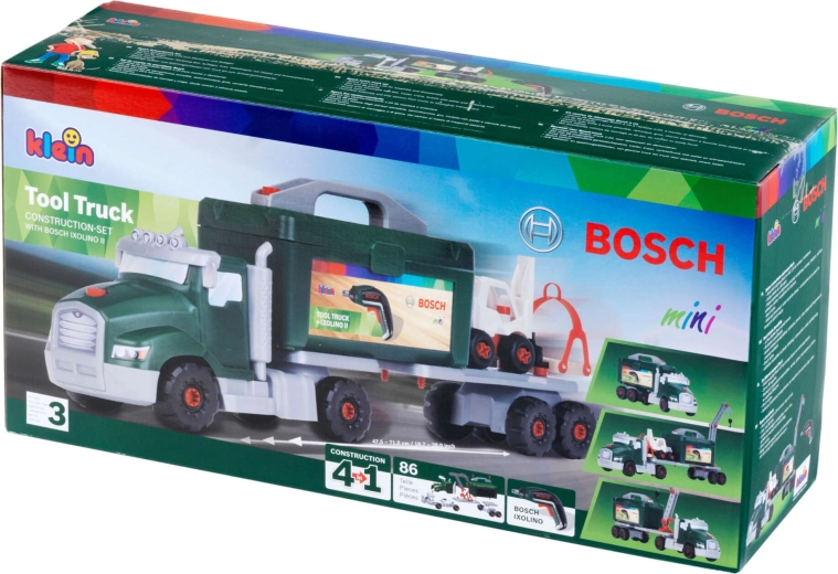 A BOSCH csavarozható teherautó gyerek építőkészlet a Klein márkától szinte végtelen játéklehetőséget kínál. A csomagban 86 darab található, beleértve a levehető szerszámos dobozt, utánfutót, darut, fúrót és egy kis villás targoncát. A gyerekek fejlesztik kézügyességüket, logikájukat és fantáziájukat, a masszív kivitelnek köszönhetően pedig a készlet hosszú éveken át szórakoztat.