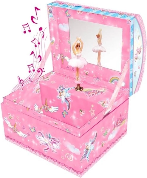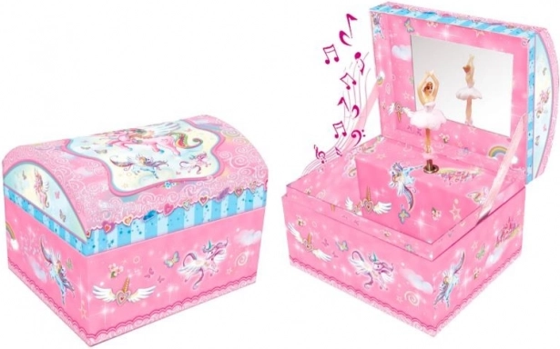 Zenedoboz egyszarvú motívummal ideális ajándék a mesék szerelmeseinek. A doboz kinyitásával klasszikus dallam csendül fel, és az egyszarvú figura forogni kezd.