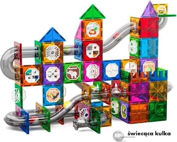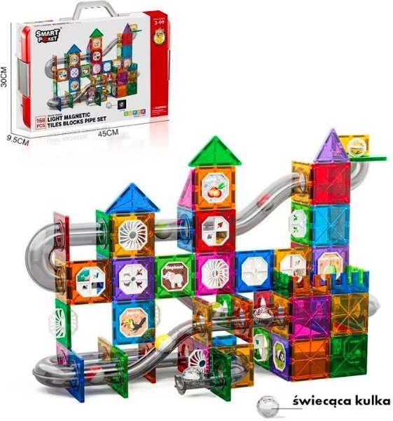 Nagy készlet világító mágneses kockákból. 168 darabot tartalmaz. Világító golyó.