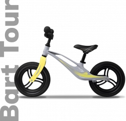 A Lionelo Bart Tour futóbicikli segít a gyerekeknek természetes módon fejleszteni a egyensúlyt, koordinációt és a magabiztos irányítást pedálok és lánc nélkül. A magnézium monocoque vázkialakításnak köszönhetően tartós, stabil és egyben nagyon könnyű, így könnyen hordozható és irányítható. A 12"-os tömlő nélküli PU kerekek Air Free Tyres technológiával nem igényelnek fújást, kiváló tapadást adnak és csökkentik a teljes kerék tömegét.