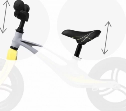 A biztonságot növeli a kormányelfordulás-korlátozó, a csúszásmentes markolat és a puha kormányvédő. A futóbicikli a folyamatosan állítható ülés- és kormánymagasságnak köszönhetően együtt nő a gyermekkel. A praktikus részletek, mint az integrált hordozófül és a formázott lábpihentető növelik a kényelmet menet közben és kezeléskor.