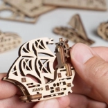 A négy mini Ugears modell készlete kellemes alkotást és játékos mechanikus funkciókat kínál zsebméretben. A huroknak köszönhetően könnyen egyedi kulcstartóvá vagy hátizsákdísszé alakíthatók. Minden hajónak saját egyszerű fogaskereke van, amely rövid pihenők során nyújt szórakozást.