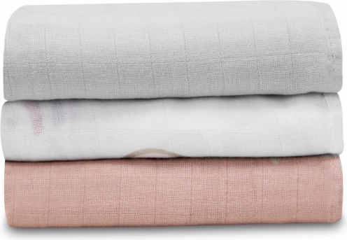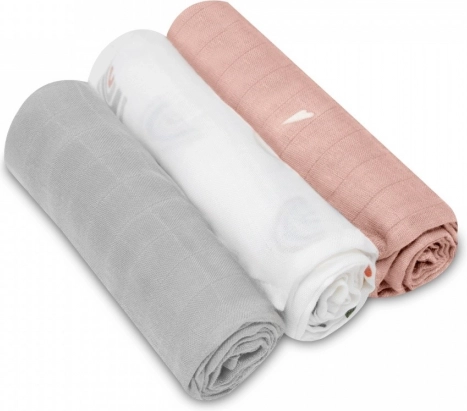 Három, színben összehangolt pelenka 70 × 70 cm méretben pólyázáshoz, szoptatáshoz, etetéshez és pelenkázó alátétként – otthon és útközben.