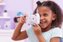 Lépj be a fantázia világába a Gabby varázsházából ismert Kitty Camera játék fényképezőgéppel. A gyerekek három műanyag „fotót” helyezhetnek be, belenézhetnek a keresőbe, és gombnyomásra figyelhetik, ahogy a cica kacsint és „kiköpi” a képet. A valósághű elemek – például a színes, nyomkodható gombok és a tekerhető tárcsák – ideális választássá teszik az óvodások számára.