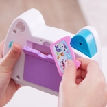 Mondj sajtot a Gabby varázsháza sorozat által ihletett, aranyos gyerek fényképezőgéppel. Ez az élethű játékfényképezőgép autentikus cicás dizájnt, gombnyomásra kacsintó cicát és behelyezhető műanyag fotókat kínál a végtelen fotózós szerepjátékhoz. A színes, nyomkodható és tekerhető gombok fejlesztik a finommotorikát, és szórakozást nyújtanak a nyugtalan kezeknek. Csak nézz a keresőbe, nyomd meg a gombot, és figyeld, ahogy megjelenik a „fotó” – pont, mint a kedvenc műsorban.