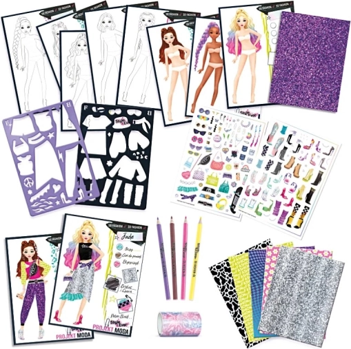 A Fashion Design sorozat készletei valódi varróanyagokat tartalmaznak különböző textúrákkal és stílusokkal, a mellékelt kiegészítők pedig a legmagasabb minőségűek. Segítségükkel bármilyen lookbookot létrehozhatsz, amelyben mindenki kifejezheti a saját stílusát és személyiségét. Glamour stílus? Alkalmi stílus? Vagy inkább rocker megjelenés? Minden lehetőség rendelkezésre áll!