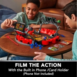 Az aréna része egy exkluzív DRAGONOID speciális támadással (pörgés) és egy XL húzózsinór a maximális hatásért. A Bakuganokat könnyen tárolhatod, megfordíthatod és ki is állíthatod a talapzaton, a csatákat pedig fel is veheted a beépített telefontartónak köszönhetően. Nem hiányoznak a gyűjtőkártyák és a Roblox játékkód sem az új játéklehetőségekhez és interakciókhoz.