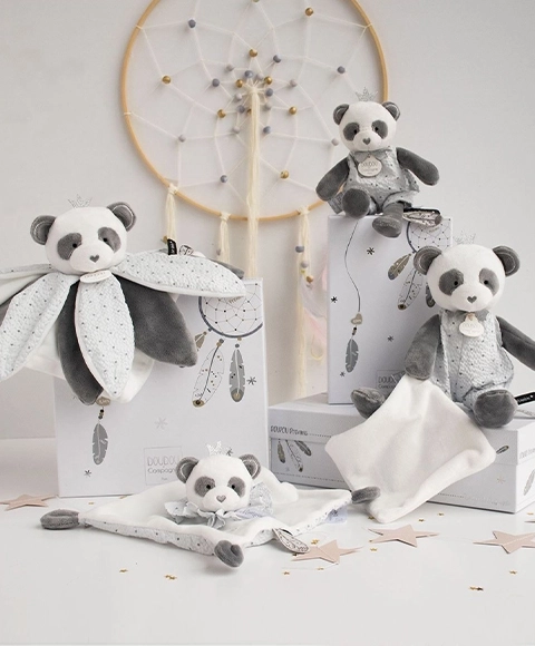 Fedezze fel az aranyos plüss pandát takaróval, amely gyengéden vigyáz a kicsi kincseire finom érintésekkel. Ez a kivételes termék úgy lett tervezve, hogy örömet és gondoskodást nyújtson gyermekének: