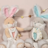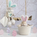 Puha ajándékszett babáknak: plüss nyuszi 31 cm-es takaróval elegáns dobozban. Selymesen puha plüss, prémium anyagok és CE szabvány szerinti biztonság a kényelemért és az érzékszervek fejlődéséért már az első napoktól.