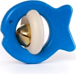 Ez a minőségi, fából készült, halacska alakú csörgő természetes anyagokból (fa és fém) készül, és megfelel minden európai biztonsági szabványnak. Ergonomikus formájának köszönhetően a legkisebb kezek is könnyen meg tudják fogni, és ideális a hangok és textúrák első felfedezéséhez. A beépített csengő biztonságosan rögzített, hangja kellemesen lágy.