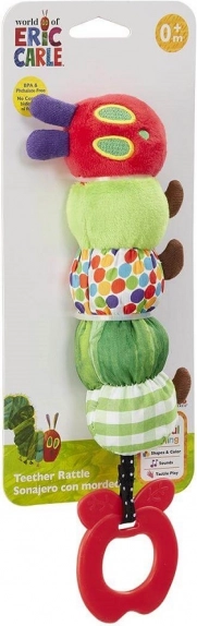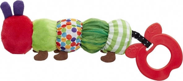 Ez a színes csörgő és rágóka az ikonikus hernyó formájában számos ingert nyújt a látás, hallás és tapintás fejlődéséhez. A puha textil szegmensek eltérő struktúrákkal és kontrasztos színekkel felfedezésre hívnak, míg a finoman texturált rágóka enyhülést biztosít a fogzás időszakában.