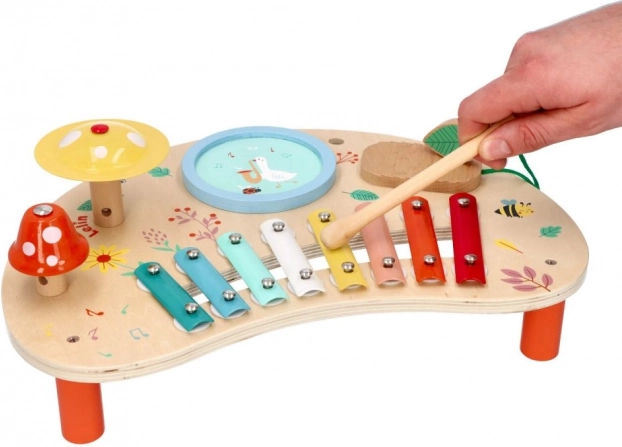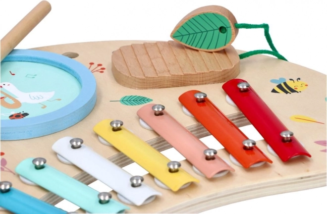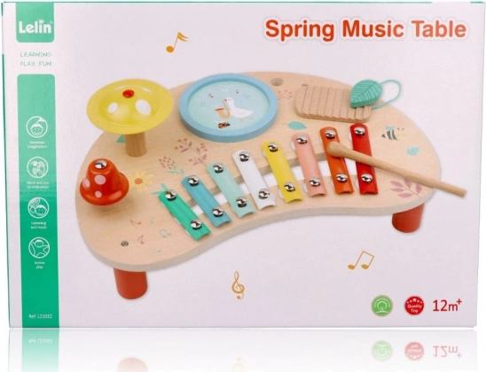 Tavaszi zenei asztal remek választás azoknak a szülőknek, akik támogatni szeretnék gyermekeik zenei fejlődését. Ez a fából készült asztal színes fém billentyűket, dobot és egyéb interaktív elemeket tartalmaz, amelyek órákon át tartó szórakozást biztosítanak. A fából készült alap vidám virág- és állatillusztrációival barátságos légkört teremt minden gyermek számára.