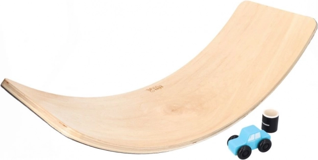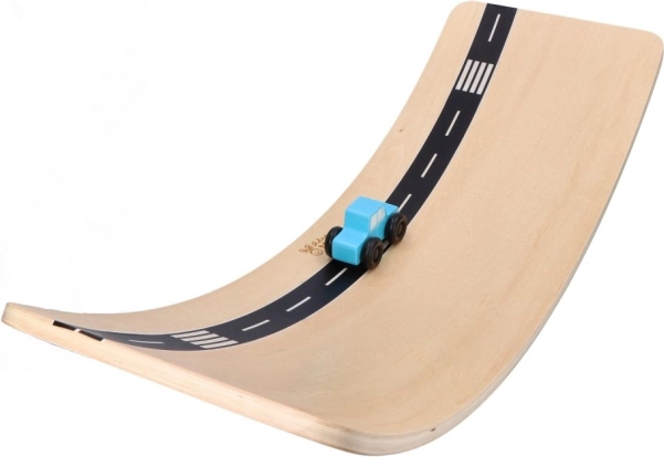 Szórakoztató és praktikus egyensúlyozó deszka filc felülettel, gyerek kisautóval és úttal, tervezve gyerekeknek és felnőtteknek 80 kg-ig.