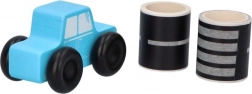 A tábla ragasztott utat tartalmaz, amelyen a mellékelt autóval lehet játszani, ezáltal bővítve a játék lehetőségeit.