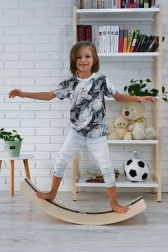 Ez az egyensúlytábla nagyszerű választás azon gyerekek számára, akik játék közben szeretnék fejleszteni koordinációjukat és erejüket. A tábla ívelt formájú, és kiváló minőségű fából készült, ami stabilitást és tartósságot biztosít. A maximális terhelhetőség 80 kg, ideális különböző tevékenységekhez.