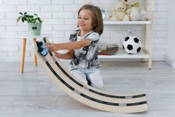 Balance tábla egy szórakoztató és funkcionális módot kínál a gyermekek egyensúlyának és motoros képességeinek javítására. A szépen kidolgozott, kis fa autóval és ragasztott úttal ellátott design órákig tartó biztonságos játékot garantál.