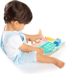 A fa laptop formákat és betűket tartalmaz, amelyek támogatják a kreatív játékot és az interaktív tanulást, ami ideális a kicsiknek.