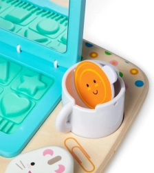 A Melissa & Doug ismert márka fa laptopja egyedi szórakozás és oktatási kombinációval érkezik. Ez a fa laptop türkiz billentyűzettel és tükörképernyővel készült, hogy támogassa az alkotó játékot és az interaktív tanulást. Tökéletes a 12 hónapos vagy annál idősebb gyerekek számára, segíti a finom motoros készségek fejlesztését és támogatja a fantáziadús játékot.