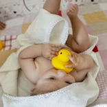 A sima felület könnyen leöblíthető, és nedves kis kezekben is jól fogható. Fürdés után elég a játékokat megszáradni hagyni, és már készen is állnak a következő használatra.