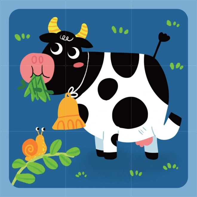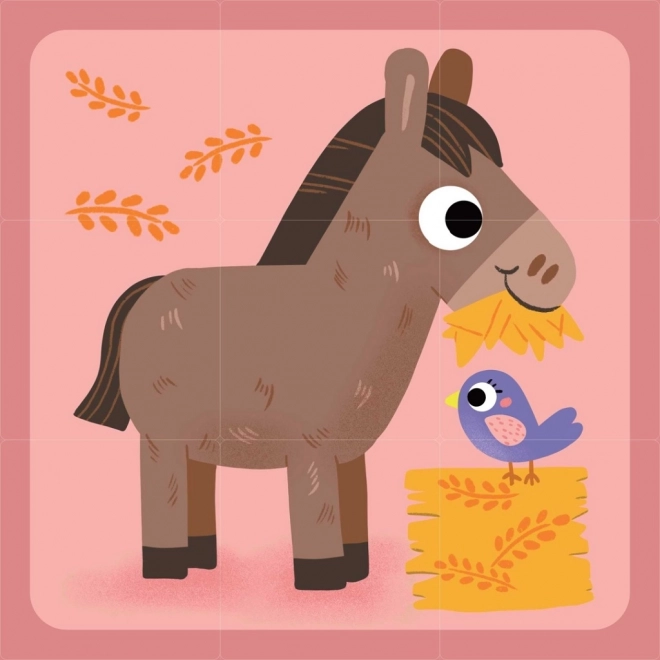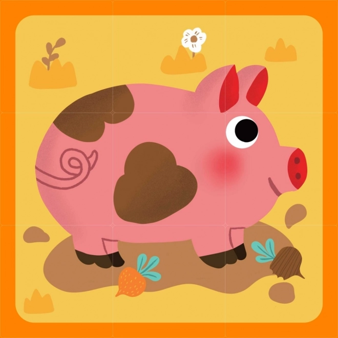 Szórakoztató fa építőkockák farm témával a legkisebbeknek. 9 kockából 6 különböző állatos képet rakhatsz ki – csak forgatni és illeszteni kell a kockákat. A masszív kivitelű, FSC® fa kockák jól illenek a kis kezekbe, fejlesztik a finommotorikát, a kézügyességet és a koncentrációt. A kompakt méret otthonra és utazáshoz is ideális.