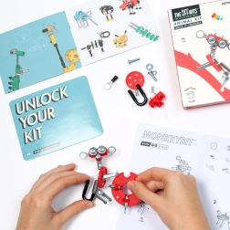 A The OffBits OpiceBit építőkészlet játékos utat kínál a tanuláshoz. A színes alkatrészekből, csavarokból és formázott elemekből a gyerekek megépítik a majom modellt, majd saját konstrukcióikkal kísérletezhetnek. A csomagban praktikus szerszám is található, így a doboz kinyitása után azonnal neki lehet állni az alkotásnak.