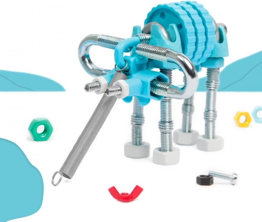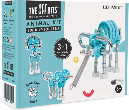 A THE OFFBITS ElephantBit építőkészlet egyszerre nyújt szórakozást és tanulást. A csavarok, anyák, U-boltok, rugók és formázott műanyag csatlakozók okos kombinációjának köszönhetően a gyerekek Elefántot, Kutyát vagy Robotot építhetnek – majd kipróbálhatják saját, eredeti konstrukcióikat. A moduláris rendszer türelemre, pontosságra nevel, és fejleszti a térbeli képzelőerőt.