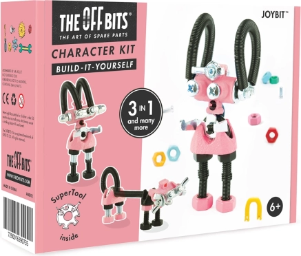 A THE OFFBITS kollekció JoyBit készlete játékos építőszett, amely a hétköznapi csavarokat és anyákat egyedi robotfigurákká változtatja. Egy szettből legalább 3 modellt építhet (pl. JoyBit, AstroBit vagy kis kedvenc), és a műanyag- és fémalkatrészek kombinációjának, valamint a mellékelt SuperTool szerszámnak köszönhetően saját, eredeti találmányai is megszülethetnek.