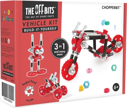 A The OffBits ChopperBit építőkészlet szórakoztató és oktató alkotást kínál 6 éves kortól. A mellékelt csavarokból, kerekekből és okos csatlakozókból megépítheted a ChopperBitet, a TechBitet vagy a BumperBitet – majd nekiláthatsz a saját, egyedi ötleteidnek is. Az elemek háztartási anyagokkal is kombinálhatók, így a kreatív lehetőségeknek nincs határa.