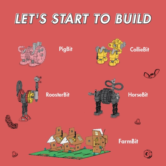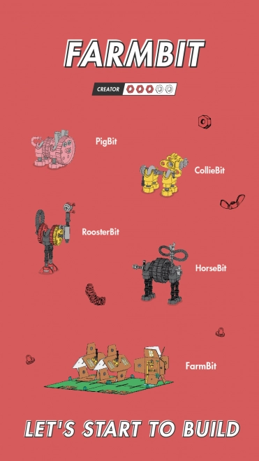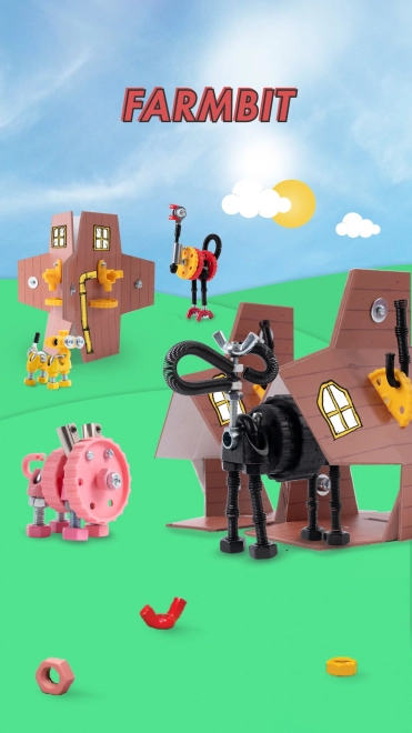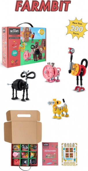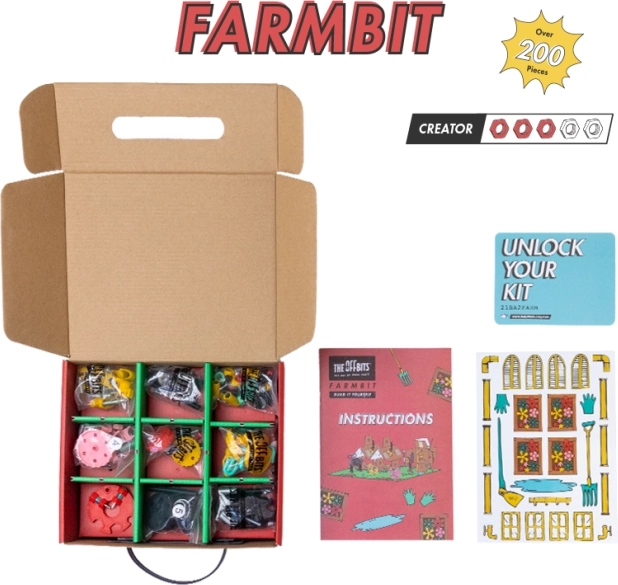 A FarmBit egy építőkészlet, amely végtelen lehetőséget nyújt farm vagy istálló megalkotására. A készlet több mint 200 színes anyát és csavart tartalmaz, így Farm animals PigBit, CollieBit, RoosterBit és HorseBit jellegű egyedi modellek készíthetők. A fantáziád az egyetlen határ további egyedi alkotások létrehozásához.