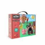 A készlet több mint 200 elemet tartalmaz, ami támogatja a kreativitás fejlődését és végtelen lehetőséget kínál egyedi építmények létrehozására.