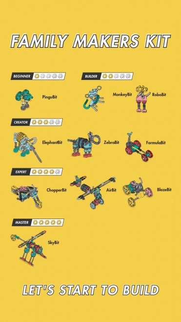 Ezt a családi szettet úgy tervezték, hogy végtelen szórakozást nyújtson az egész családnak. Tökéletes csoportos tevékenységekhez, ahol minden generáció bekapcsolódhat. Változatos tartalmának köszönhetően legalább tíz modellt lehet megépíteni már a dobozból. Az OffBits játékok fejlesztik a finommotorikát, a térbeli képzelőerőt, a problémamegoldást, valamint támogatják a fejlődést a tudomány, technológia, mérnökség, művészet és matematika területein.