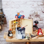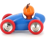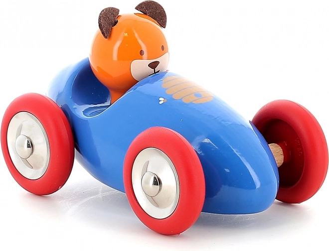 Ez a kék fa versenyautó piros kerekekkel és mosolygós medve sofőrrel időtálló dizájnjával és tartósságával hódít. A bemártásos lakkozás gyönyörű fényt és fokozott kopásállóságot ad a felületnek, így ideális a mindennapos játékhoz.