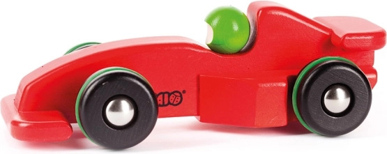 Piros versenyautó a Bajotól, amely ideális játék a kis versenyzők számára. A biztonságra és a természetes anyagra helyezett hangsúly segíti a durva motorikus készségek fejlesztését, miközben szórakoztató formák és terek felfedezését biztosítja.