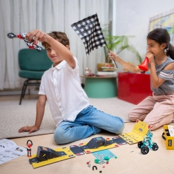 Az OffBits RaceBit szerves része a mindennapi tárgyakkal való kompatibilitás, ami lehetőséget ad a gyerekeknek, hogy saját egyedi találmányaikat hozzák létre megszokott anyagok felhasználásával. Ezenkívül a készlet csomagolása játéksávvá alakítható, ami növeli a játék szintjét és órákra lefoglalja a gyerekeket.
