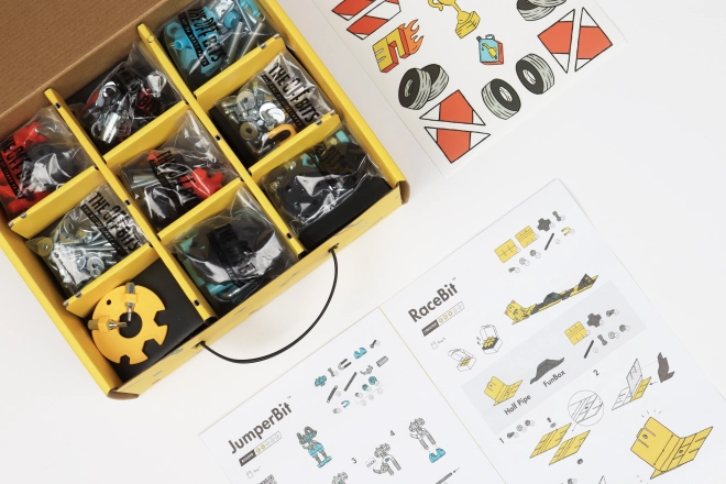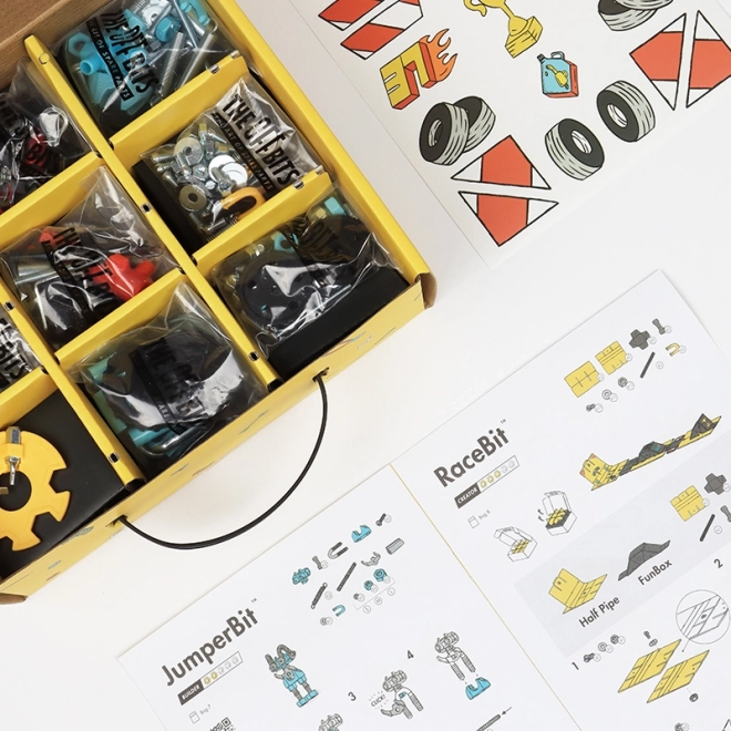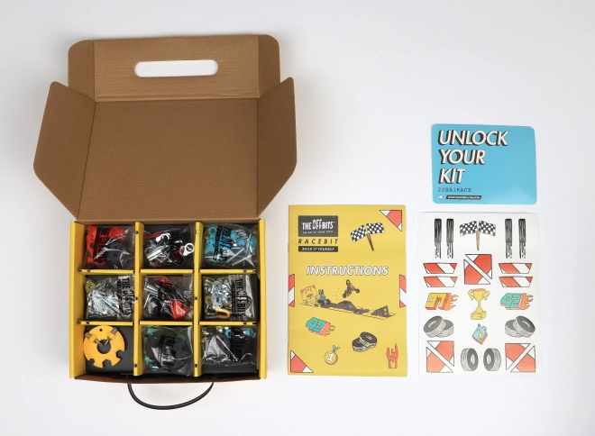 Induljon el a sebesség kalandjára az OffBits RaceBit építőkészlettel! Állítsd össze a versenycsapatokat anyákból és csavarokból, és alakítsd a hulladékmentes csomagolást versenypályává.